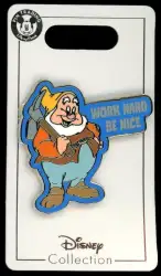 Happy - Work Hard Be Nice is an Open Edition pin from the Snow White and the Seven Dwarfs pin series. It was originally released on , 2021 and was available from Multiple Sources (WDW, DLR, etc.).