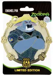 Chief Bogo is a Limited Edition (LE) 300 pin from the Pink A La Mode (PALM) - Disney Iconic Series: Zootopia pin series. It was originally released on , 2023 and was available from an Officially Licensed Disney trading pin vendor (see description for more information).