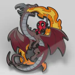 Deadpool on a Dragon is an Open Edition pin from the TeeTurtle: Marvel pin series. It was originally released on , 2023 and was available from an Officially Licensed Disney trading pin vendor (see description for more information).