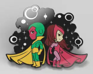 Wanda & Vision is an Open Edition pin from the TeeTurtle: Marvel pin series. It was originally released on , 2023 and was available from an Officially Licensed Disney trading pin vendor (see description for more information).