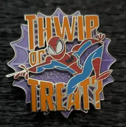 Thwip or Treat Spider-Man is an Open Edition pin from the Halloween 2023 pin series. It was originally released in August, 2023 and was available from Disney Store US .
