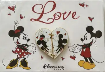 Mickey and Minnie Heart Love Postcard is an Open Edition pin. It was originally released on , 2016 and was available from Disneyland Resort Paris .