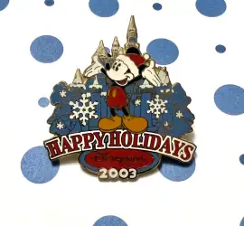 Mickey Mouse Happy Holidays 2003 is a Limited Edition (LE) 3500 pin from the Annual Passholder Exclusive pin series. It was originally released on , 2003 and was available from Disneyland Resort .