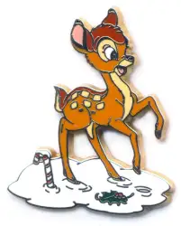 Bambi Only is an Open Edition pin from the Bambi and Thumper Winter Holidays Starter Kit pin series. It was originally released in January, 2006 and was available from Disneyland Resort Paris .