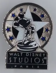Mickey Statue Logo (Blue Glitter Stars Variant) is an Open Edition pin from the Walt Disney Studios Park pin series. It was available from Disneyland Resort Paris .