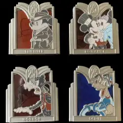 Boxed Golden Age of Hollywood Genres Set - Full Set is a Limited Edition (LE) 500 4-pin set from the Disney’s Hollywood Studios 25th Anniversary pin series. It was originally released in May, 2014 and was available from Walt Disney World .