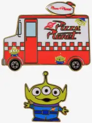 Toy Story Pin Set - Full Set is an Open Edition 2-pin set from the BoxLunch - Our Universe Pixar Food Truck Pin Sets pin series. It was originally released on , 2023 and was available from an Officially Licensed Disney trading pin vendor (see description for more information).