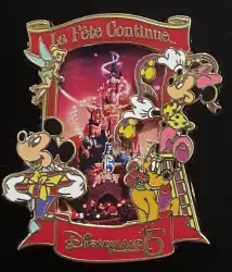 La Fete Continue is a Limited Edition (LE) 900 pin from the Disneyland Paris 15th Anniversary pin series. It was originally released in January, 2008 and was available from Disneyland Resort Paris .