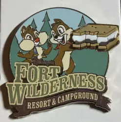 Chip and Dale eating a s’more is an Open Edition pin from the Fort Wilderness Resort & Campground pin series. It was originally released on , 2023 and was available from Walt Disney World .