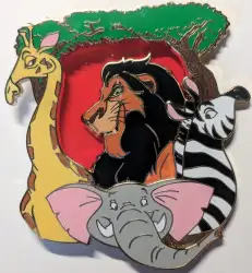 Scar Stained Glass is a Limited Edition (LE) 300 pin from the The Lion King Stained Glass pin series. It was originally released on , 2017 and was available from Disney Studio Store Hollywood / Soda Fountain .