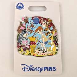 Pin features Eeyore , Piglet , Roo , Tigger , Christopher Robin , Kanga , Pooh Bear and Rabbit from Winnie the Pooh