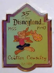 Critter Country is a Limited Release pin from the Cast Member 35th Anniversary Shield Set pin series. It was originally released in January, 1990 and was available from Disneyland Resort .