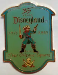 New Orleans Square is a Limited Release pin from the Cast Member 35th Anniversary Shield Set pin series. It was originally released in January, 1990 and was available from Disneyland Resort .