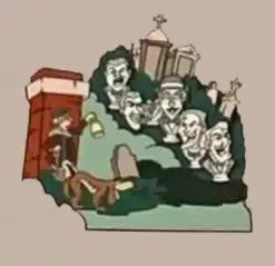 Singing Busts & Caretaker is a Limited Edition (LE) 300 pin in the WDI - Haunted Mansion 50th Anniversary - Mystery Puzzle Set - Complete Set 11-pin set from the The Haunted Mansion 50th Anniversary Mystery Puzzle pin series. It was originally released on , 2019 and was available from Walt Disney Imagineering .