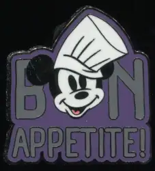 Mickey and Minnie Sayings Set - Bon Appetite! ONLY is a Limited Release pin in the Mickey and Minnie Sayings Set - Full Set 4-pin set from the EPCOT International Food & Wine Festival 2019 pin series. It was originally released on , 2019 and was available from Walt Disney World .