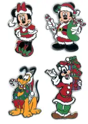 Christmas/Noël Booster Set is an Open Edition 4-pin set from the Joyeux Noël 2017 pin series. It was originally released on , 2017 and was available from Disneyland Resort Paris .