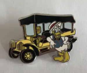 Donald Duck with Horseless Carriage is an Open Edition pin from the Main Street USA Area Vehicles pin series. It was originally released on , 2009 and was available from Disneyland Resort .