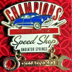 Champions Custom Speed Shop is an Open Edition pin from the Cars Land pin series. It was originally released on , 2012 and was available from Disneyland Resort .