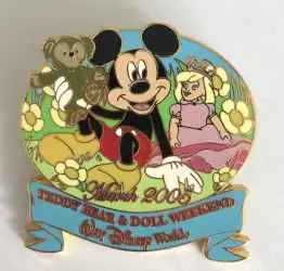 Mickey with Duffy and Doll is a Limited Edition (LE) 1000 pin from the Teddy Bear & Doll Weekend pin series. It was originally released on , 2005 and was available from Walt Disney World .
