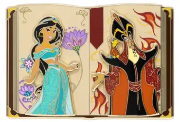 Jasmine & Jafar - Aladdin is a Limited Edition (LE) 300 pin from the Pink A La Mode (PALM) - Disney Story Book Series pin series. It was originally released on , 2023 and was available from an Officially Licensed Disney trading pin vendor (see description for more information).