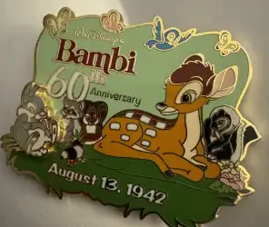 Walt Disney's Bambi is a Limited Edition (LE) 2000 pin from the Bambi 60th Anniversary pin series. It was originally released on , 2002 and was available from Disneyland Resort .