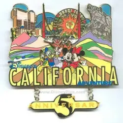 5th Anniversary — Sensational Six and Park Icons Jumbo Dangle is a Limited Edition (LE) 500 pin from the Disney's California Adventure Anniversaries pin series. It was originally released on , 2006 and was available from Disneyland Resort .