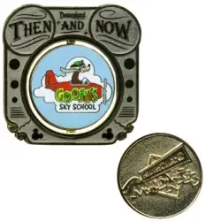 Mulholland Madness to Goofy's Sky School is a Limited Edition (LE) 1000 pin from the Then and Now - Disneyland Attractions Series pin series. It was originally released on , 2011 and was available from Disneyland Resort .
