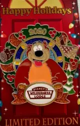 Wilderness Lodge - Humphrey is a Limited Edition (LE) 2000 pin from the Resort Holiday Collection 2020: Glitter Wreaths pin series. It was originally released in November, 2020 and was available from Walt Disney World .