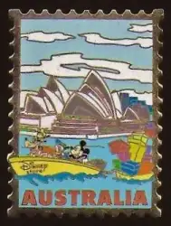 Australia is an Open Edition pin from the 12 Months of Magic - Disney Store Country Stamp pin series. It was originally released on , 2002 and was available from Disney Store US .