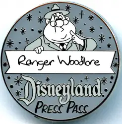 Ranger Woodlore CHASER is a Limited Edition (LE) 55 pin from the Dateline: Disneyland 1955 - Press Pass Mystery Set pin series. It was originally released on , 2010 and was available from Disneyland Resort .