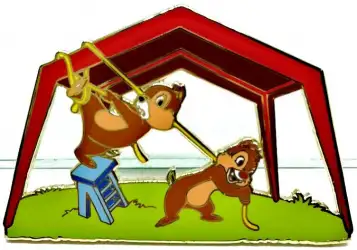 Chip and Dale Pitch a Tent is a Limited Edition (LE) 100 pin from the Summer Six Pin Set pin series. It was originally released on , 2005 and was available from Disney Auctions .