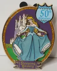 Aurora (blue dress) in front of castle is a Limited Edition (LE) 1000 pin from the Sleeping Beauty 50th Anniversary pin series. It was originally released on , 2008 and was available from Disneyland Resort .