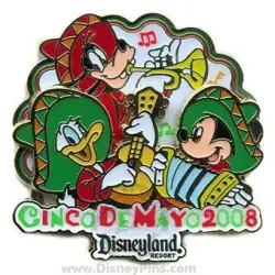 Mickey, Donald, and Goofy is a Limited Edition (LE) 1000 pin from the Cinco de Mayo pin series. It was originally released on , 2008 and was available from Disneyland Resort .
