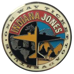 Indiana Jones Bezel Spinner - One Way Ticket to Adventure is an Open Edition pin from the Indiana Jones pin series. It was originally released on , 2010 and was available from Multiple Sources (WDW, DLR, etc.).