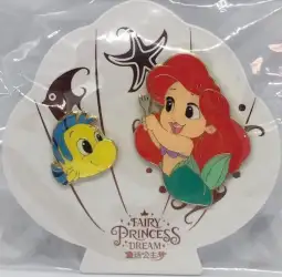 Ariel and Flounder is a Limited Edition (LE) 800 pin from the SDR - Fairy Princess Dream Collection - Princesses and Sidekicks pin series. It was originally released in November, 2019 and was available from Shanghai Disney Resort .