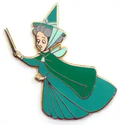 Fauna Casting a Spell is an Open Edition pin from the Sleeping Beauty pin series. It was originally released in January, 2001 and was available from Multiple Sources (WDW, DLR, etc.).