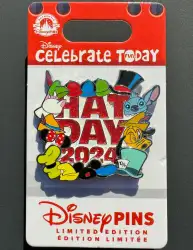 Hat Day is a Limited Edition (LE) 2000 pin from the Celebrate Today Series pin series. It was originally released on , 2024 and was available from Multiple Sources (WDW, DLR, etc.).