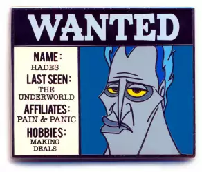 Hades is a Limited Edition (LE) 500 pin from the Cast Member Exclusive - Wanted Collection pin series. It was originally released on , 2017 and was available from Theme Park Cast Member Exclusive .