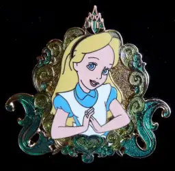 Alice is a Limited Release pin from the Disney Girls Reveal/Conceal Mystery Collection pin series. It was originally released on , 2010 and was available from Disneyland Resort .