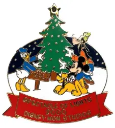 2000 - Donald, Mickey, Goofy, and Pluto (Light Up) is a Limited Edition (LE) 4400 pin from the Osborne Family Spectacle of Dancing Lights pin series. It was originally released in November, 2000 and was available from Walt Disney World .