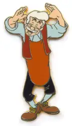 Geppetto with His Arms Raised is an Open Edition pin from the Pinocchio pin series. It was originally released on , 2001 and was available from Multiple Sources (WDW, DLR, etc.).