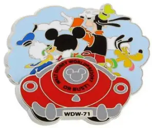 Walt Disney World Resort or Bust! is an Open Edition pin from the Mickey and Gang in Car pin series. It was originally released on , 2014 and was available from Walt Disney World .