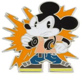 Mickey with Headphones on Orange Burst Background is an Open Edition pin. It was originally released on , 2014 and was available from Multiple Sources (WDW, DLR, etc.).