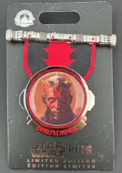 Darth Maul is a Limited Edition (LE) 3000 pin from the Lightsaber Medal Series pin series. It was originally released on , 2024 and was available from Multiple Sources (WDW, DLR, etc.).