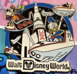Goofy and Donald on Star Jets is a Limited Edition (LE) 1000 pin from the Gold Card Collection - Retro Walt Disney World pin series. It was originally released on , 2009 and was available from Walt Disney World .