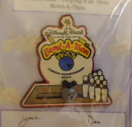 Bowl-A-Thon 2005 - Junior Achievement is a Limited Release pin from the DisneyHand: Helping Kids Shine pin series. It was originally released on , 2005 and was available from Walt Disney World .