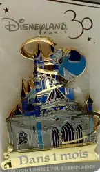 Countdown 1 month - Merryweather flying over the castle is a Limited Edition (LE) 700 pin from the Disneyland Paris 30th Anniversary pin series. It was originally released on , 2022 and was available from Disneyland Resort Paris .