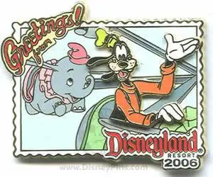Dumbo the Flying Elephant - Goofy is a Limited Edition (LE) 1000 pin from the Greetings from Disneyland Postcards 2006 Collection pin series. It was originally released on , 2006 and was available from Disneyland Resort .