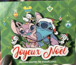 Joyeux Noël - Stitch & Angel is a Limited Edition (LE) 700 pin from the Christmas 2023 pin series. It was originally released on , 2023 and was available from Disneyland Resort Paris .