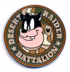 Desert Raider Battalion is an Open Edition pin from the 2008 Hidden Mickey - Armed Forces pin series. It was originally released on , 2008 and was available from Disneyland Resort .